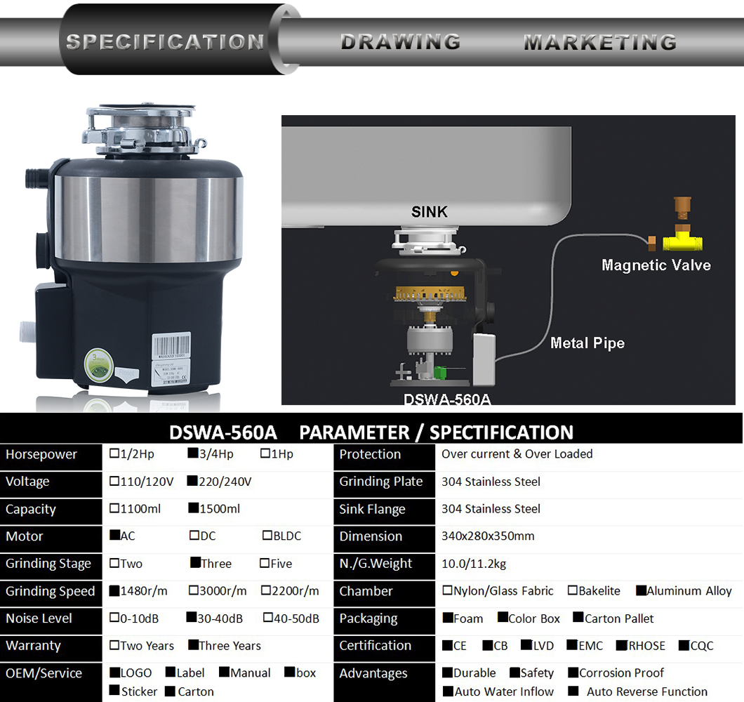• kitchen food waste disposal DSWA-560A