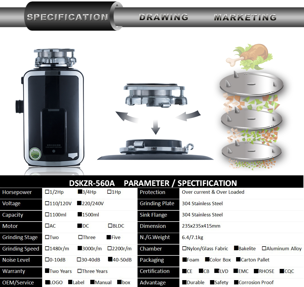 • DSKZR-560A food waste disposer