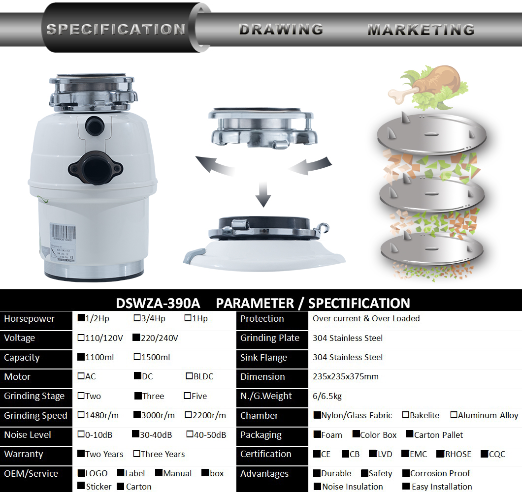 • DSWZA-390A food waste disposer