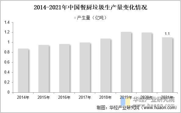 2014-2021年中國餐廚垃圾生產(chǎn)量變化情況