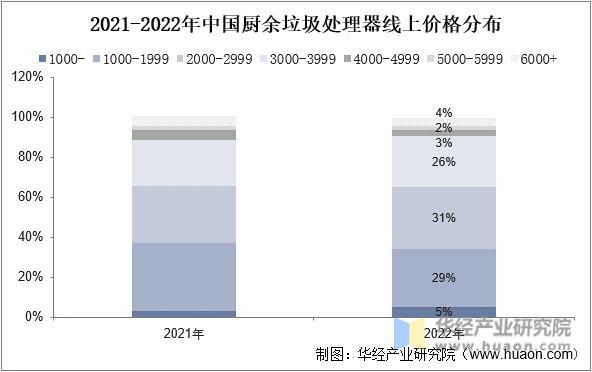 2021-2022年中國廚余垃圾處理器線上價格分布