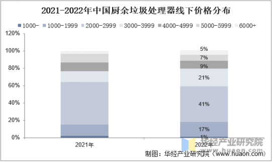 2021-2022年中國廚余垃圾處理器線下價格分布