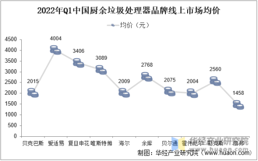 2022年Q1中國廚余垃圾處理器品牌線上市場均價