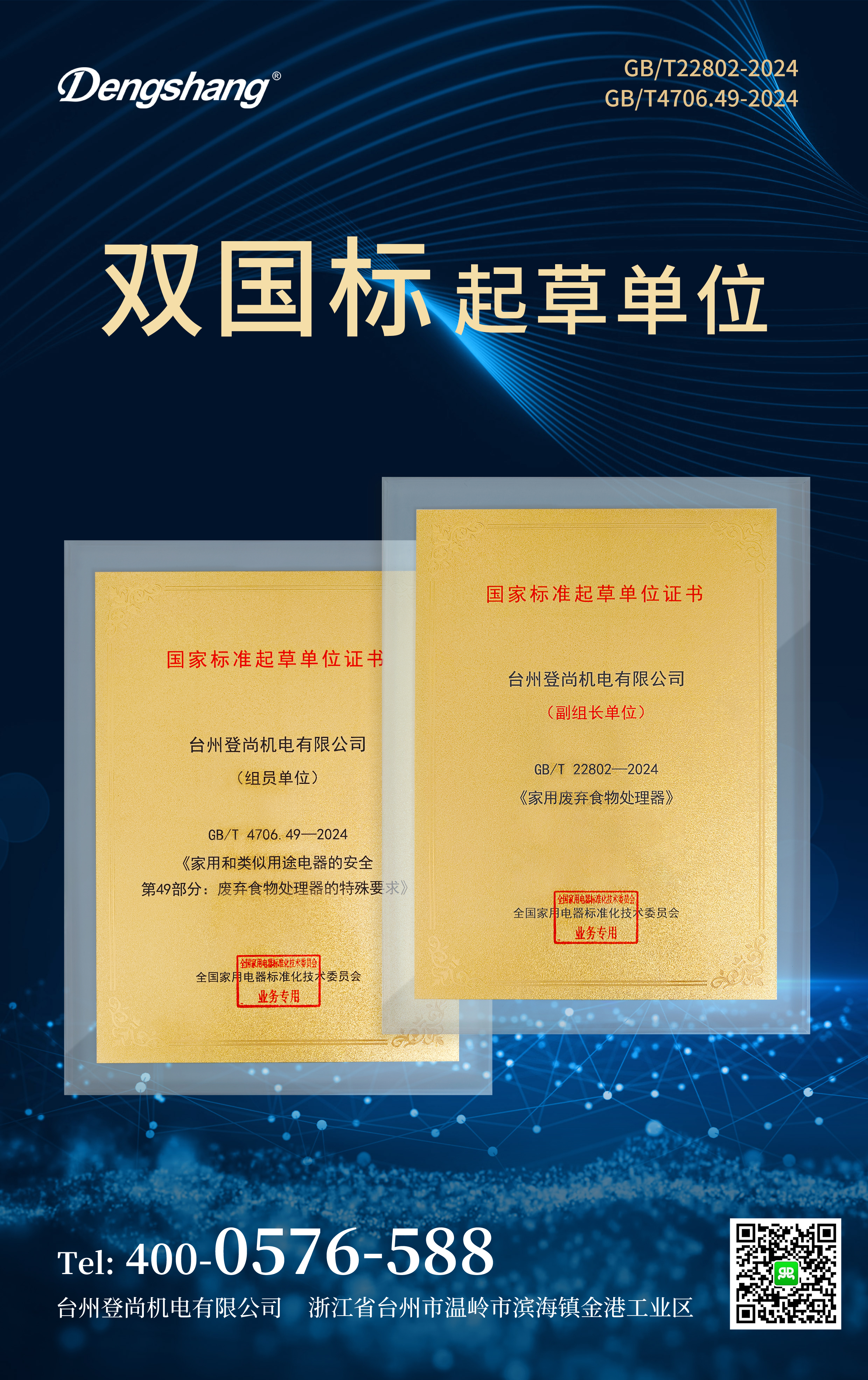 2024 年 8 月 28 日,臺州登尚機電有限公司在廢棄食物處理器行業(yè)內(nèi)引起了廣泛關(guān)注。作為GB/T 4706.49-2024 、GB/T 22802-2024廢棄食物處理器國標(biāo)起草單位之一,臺州登尚機電有限公司以其卓越的技術(shù)實力和專業(yè)的行業(yè)素養(yǎng),為推動廢棄食物處理器行業(yè)的規(guī)范化發(fā)展做出了重要貢獻。